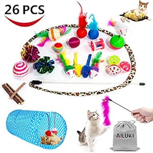 AILUKI 26PCS Cat Toys Kitten Toys Assortments, Variety Catnip Toy Set Including 2 Way Tunnel,Cat Feather Teaser,Catnip Fish,Mice,Colorful Balls and Bells for Cat,Puppy,Kitty