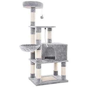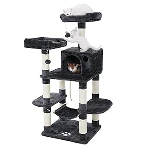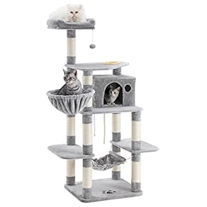 FEANDREA 58” Multi-Level Cat Tree with Sisal-Covered Scratching Posts, Plush Perches, Hammock and Condo, Cat Tower Furniture – for Kittens, Cats and Pets