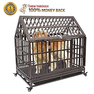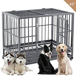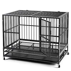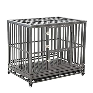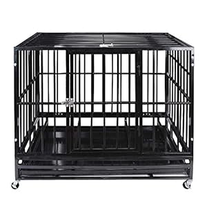 KELIXU Heavy Duty Dog Crate Strong Metal Pet Kennel Playpen with Two Prevent Escape Lock, Large Dogs Cage with Four Wheels …