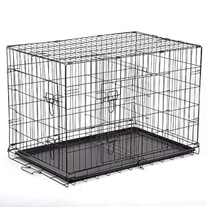 SUNCOO Dog Crate Double Door Folding Metal Divider Animal Panel with Handle Wire Dog Cage, Leak-Proof Dog Tray