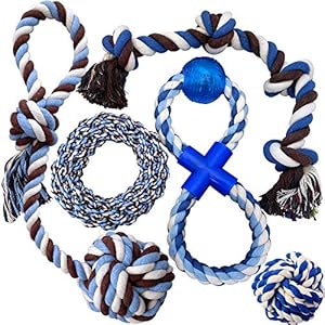 Well Love Dog Toys – Chew Toys – 100% Natural Cotton Rope – Squeak Toys – Dog Balls – Dog Bones – Plush Dog Toy – Dog Ropes – Tug of War Ball – Toys for Dog 6pack Gift Set