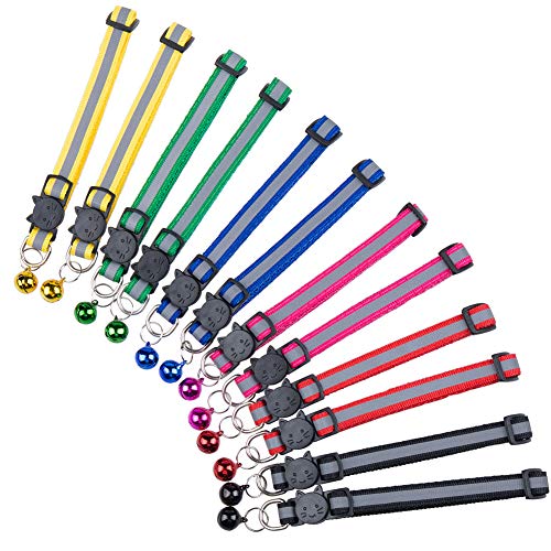 KZHAREEN Reflective Nylon Breakaway Cat Collars Bell Adjustable Small Pet Dog Puppies(12pcs/Set)